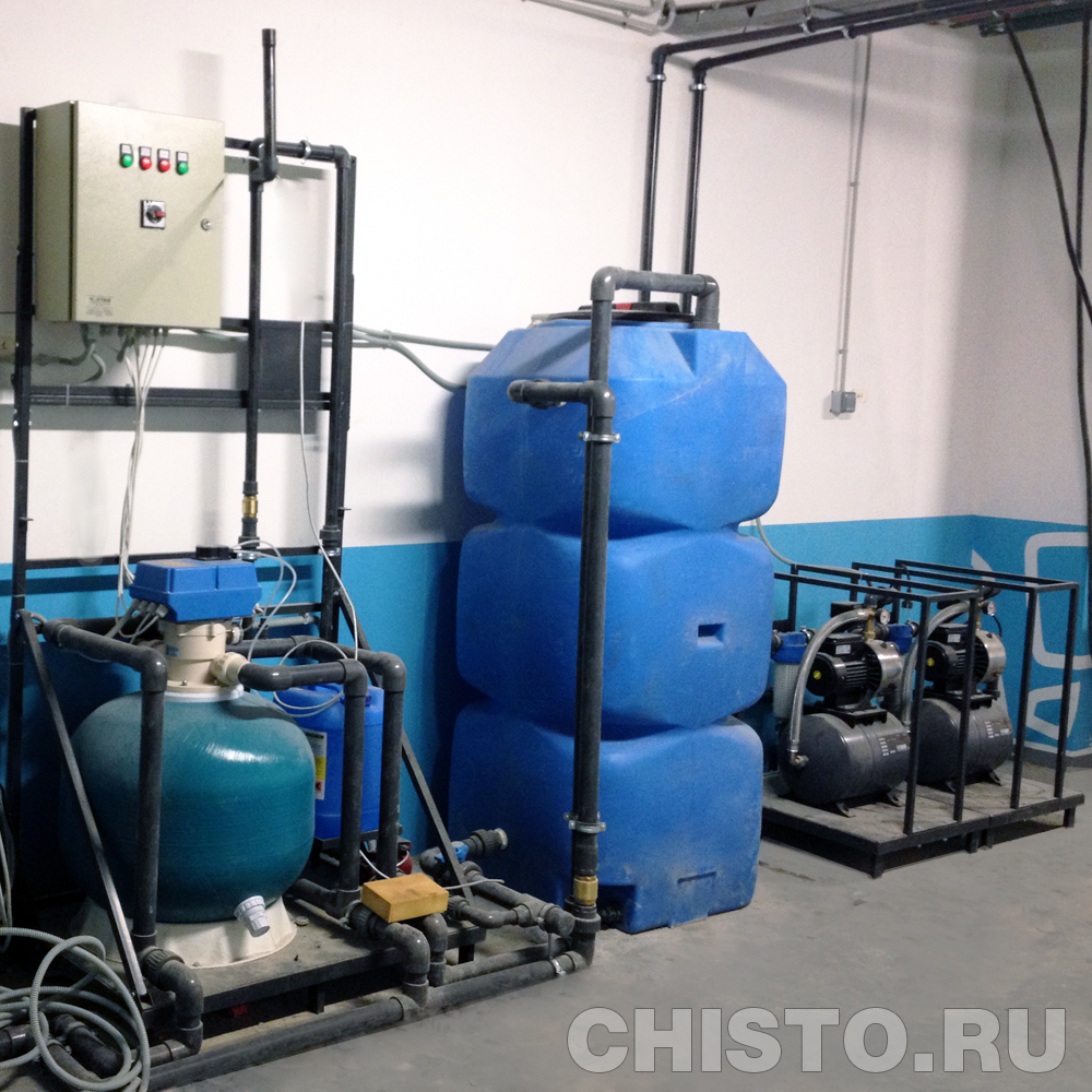 После отстаивания вода проходила фильтрацию через СОРВ-5/800-Р-АП(00.01-92) и отправлялась на аппараты при помощи двух модулей повышения давления.(00.01-33) Во-избежании переполнения бака отстойника, система была снабжена сигнализирующим устройством со световой и звуковой индикацией.(00.02-19)